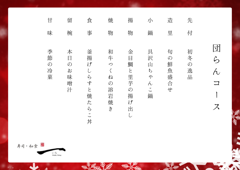 凛とした空気にぬくもりを感じるこの季節、寿司・和食一から「初冬の団らんコース」のご案内。