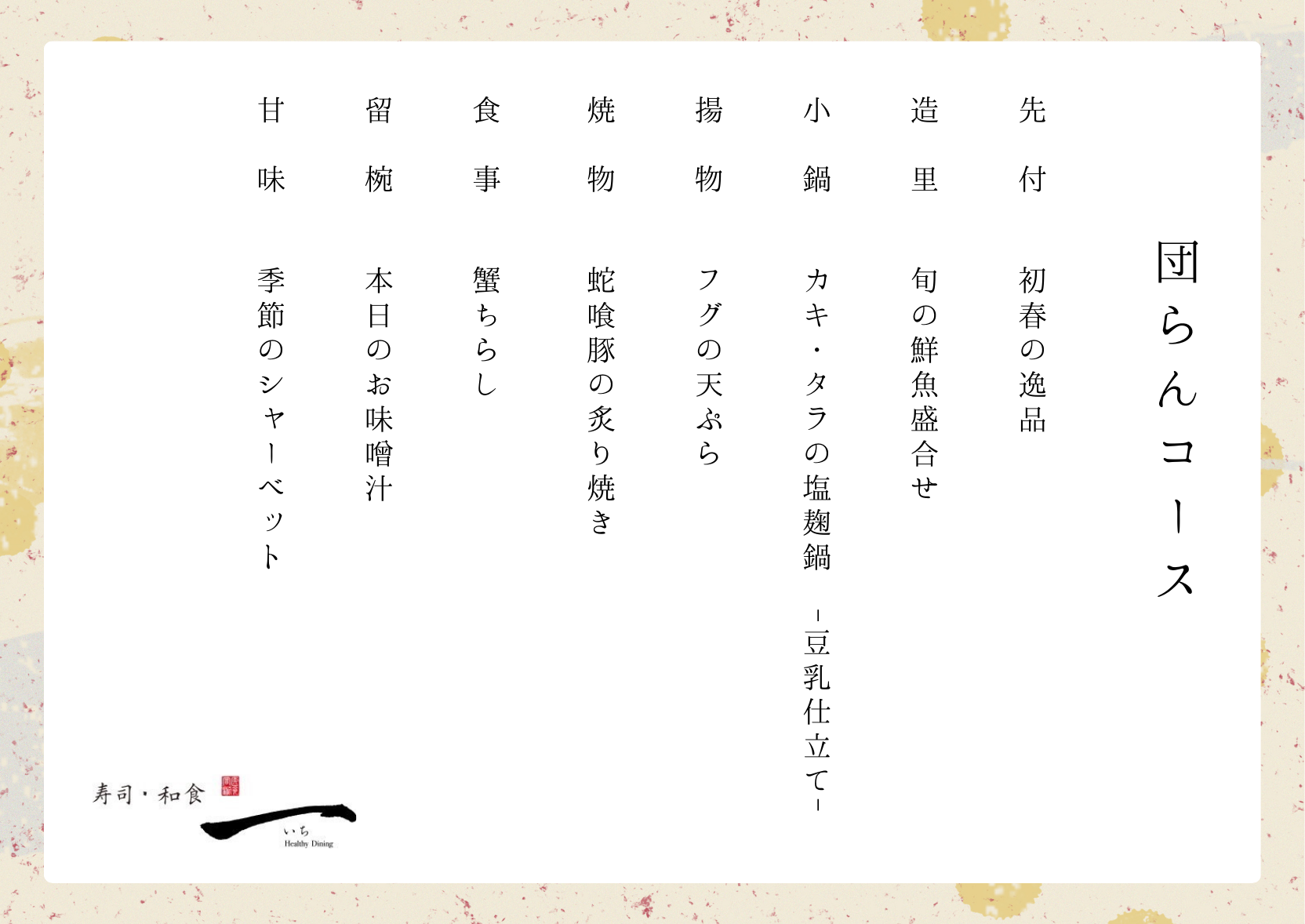 会話が自然と弾み、笑顔が広がるような料理を揃えた「団らんコース」は、新年会をはじめ、ご家族やご友人、職場でのお集まりにおすすめです。旬の味わいを気軽に楽しみながら、和やかな時間をお過ごしください。